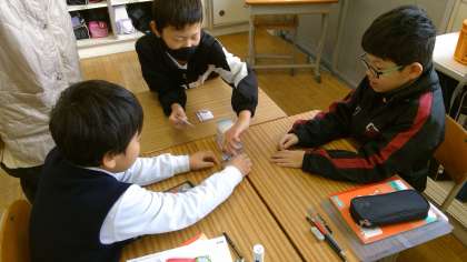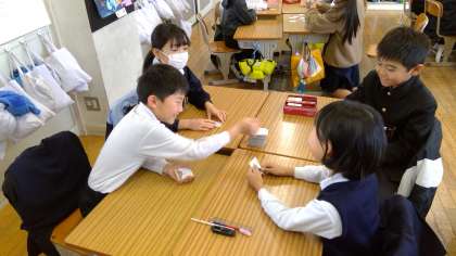 3年生では俳句について勉強しましたが、4年生では短歌や百人一首について学びました。タブレットを使ってお気に入りの短歌を探しその意味を考えました。また、班の友達と坊主めくりや百人一首をして楽しみ昔の文化に親しむことができました。