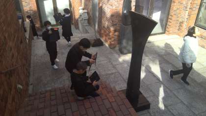 説明が終わり、グループや個人で自由に作品を撮影しています。とても楽しそうです。