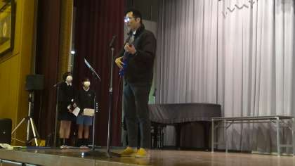 教頭先生のギター、バレエ、折り紙の早わざの様子です。