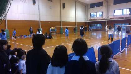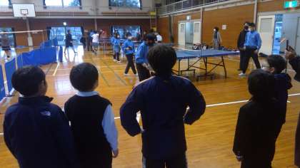 上級生のお兄さんお姉さんが一生懸命活動に取り組む様子を見て、見学後にはもう入るクラブを決めた子もいたようです。写真は、バトミントンクラブ、卓球クラブ、お茶クラブの活動を見学している様子です。