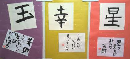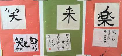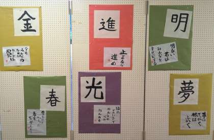 書写アートクラブの皆さんの作品が、1階パントリー前(2松教室の近く)に掲示されていました。名前は、授業参観までには掲示するとのことです。授業参観に来られた時には、ぜひ、実物の力作をご覧いただけたらと思います。