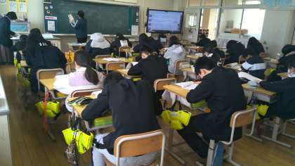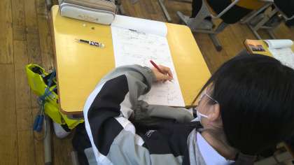 本日の3時間目。6年松組さんは、算数の授業です。6年生のこの時期になりますと、新しく習うというよりは、これまでの復習が中心となります。担任・担当教員が用意した復習プリントをどんどん進めているようです。今日は、その様子を、少し高い所から撮影してみました。卒業まで、残すところ1か月と少し。卒業に向けての準備も大変だと思いますが、学習のまとめも最後まで粘り強く取り組んでいますね。