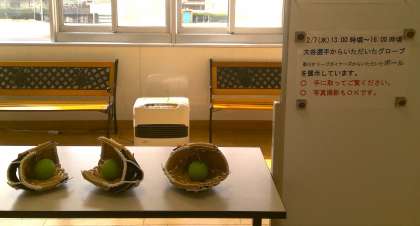 明日2月7日(水)に行われる授業参観日に、保護者の皆様にも「大谷グローブ」(大谷選手からプレゼントしていただいたグローブ)と香川オリーブガイナーズからいただいたボールを公開します。時間は、13:00頃〜16:00頃で、場所は、本館2階の多目的スペース(3竹教室前の広い廊下)です。