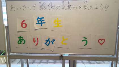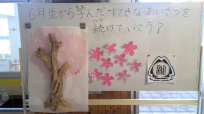 そのあいさつ運動で完成をめざしている掲示物を紹介します。あいさつ運動2日目現在は、こんな状況です。