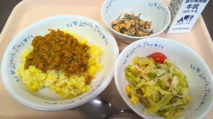 〇ドライカレー 〇牛乳 〇大豆のごまちり