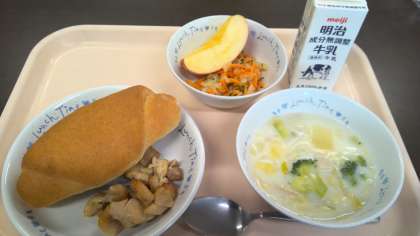 〇全粒粉パン 〇牛乳 〇コロコロチキン