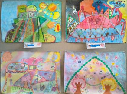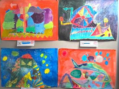 階段の踊り場掲示作品(4年)