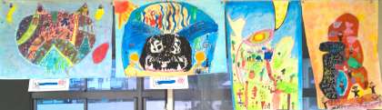 4年松組に掲示している図工の作品です。授業参観日に見逃してしまったという保護者の皆様、ゆっくりとご覧ください。名前は伏せていますので、どの作品なのかは、お子様にお聞きください。なお、階段の踊り場に掲示している作品については、既にアップしております。