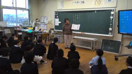 今年度、最終の「ボランティアの方による読み聞かせ会」がありました。朝の活動の時間、4〜6年生の各クラスに、読み聞かせボランティアの方が来てくださり、絵本や紙芝居、英語の本などの読み聞かせをしてくださいました。