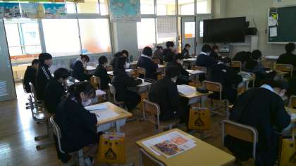 1年間、教室を巡って取材してきた今年度の「授業風景」も6年梅組さんが、いよいよ最終回となりました。卒業式まで約1週間。「何かお勉強をしているのだろうか?」と思って2時間目の途中に、教室に入ると…、だいじょうぶ、みんな真剣に国語のテストの答え合わせをしていました。