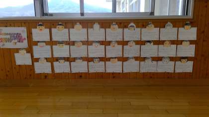 1年生から6年生に向けて書いた「ありがとうカード」を6年教室前の廊下に掲示しています。いっしょにあそんでくれてありがとう。