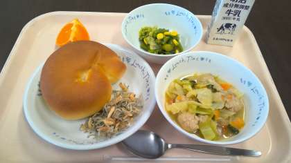 〇ミルクパン 〇牛乳 〇手作り肉団子のスープ煮