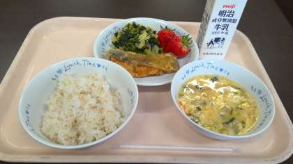 今年度の給食も、今日と明後日の2回だけとなりました。本日の給食メニューを一言で表すとしたら「じっくりと落ち着いて食べることができるメニュー」です。和食ということもその理由の一つです。また、昔風、家庭的、奥ゆかしい味わいといった感じで、ワクワク感は少ないですが、安心して味わうことができる安定したおいしさのメニューといったところが、大きな理由です。