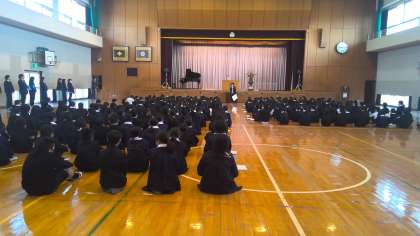 修了式の後は、生徒指導担当の教員の話がありました。明日から、春休みです。この春休み中に学年が1つずつ上がります。