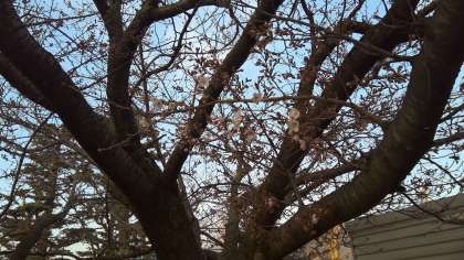 本校の校庭の桜の中では、体育館横の一番大きな桜の木が、一番早く花を咲かせました。今日も気温がかなり高くなるようですので、開花が一気に進みそうです。