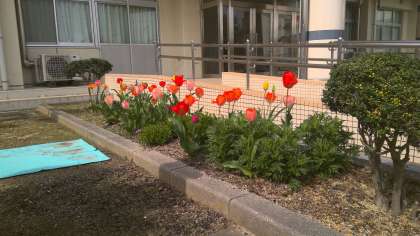 花だよりの続きです。児童玄関辺りです。