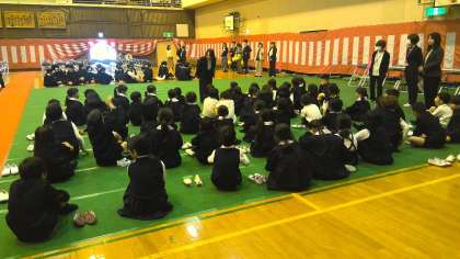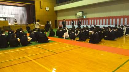 2〜6年生までの全学年でクラス替えがありました。体育館では、2年生と6年生のクラス替えが行われていました。松組、竹組、(梅組)の出席番号順に新担任から名前を呼ばれ、そのクラスの列に並んでいきました。