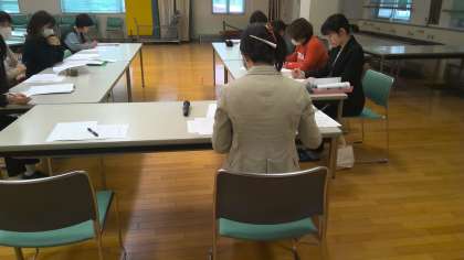本日、詫間小学校のランチルームで「詫間町学校給食献立研究会」が行われています。本日の議題は、5月の献立についてや、前年度の給食の反省等です。昨年度は、詫間中学校で開催されましたが、今年度は詫間小学校での開催となります。