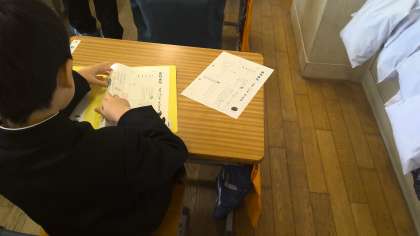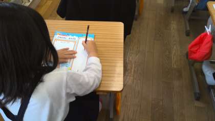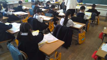 本日の2時間目。1年竹組さんは、生活科の授業です。まずは、大切な連絡帳についてです。朝、出した連絡帳を返してもらって、今日の連絡帳をファイルに綴じていきます。1年生にとっては、なかなか大仕事。でも、上手に綴じています。そして、連絡袋の中にしまっています。どんどん、できることが増えていきます。長子(この学校にお兄さん、お姉さんがいない子)の子どもは、お知らせのプリントが多い時がありますが、自分が長子か違うのかも確かめています。その上、プリントを後ろに送っていく方法も学んでいます。1年生にとっては難しいことばかりだと思いますが、1竹さんもスーパー1年生です。どんどんクリアしていきます。