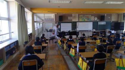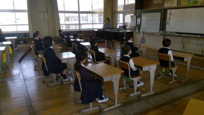 2年生になり、新しく音楽室での音楽が始まりました。音楽担当の佐藤先生と一緒に、ピアノに合わせての挨拶の仕方、歌う時の立ち方、教科書の持ち方などを確認しました。その後、詫間小学校の校歌を元気よく歌いました。「音楽楽しかった!」「これからも楽しみ!」と、明るく前向きな発言が多く聞かれました。歌も楽器もどんどん上達していく姿が楽しみです。