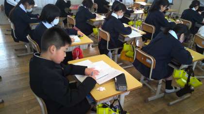 6梅の教室は、とても落ち着いていて、しかも、柔らかい感じがします。空いている席に座って授業の様子を見ていますと、朗らかで安心した気持ちになります。何とも言えない心地よい風を感じます。6梅さん、とてもいい空気がクラスに流れていますね。さすがは、6年生です。