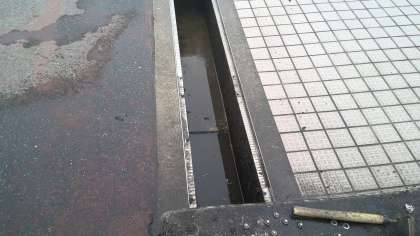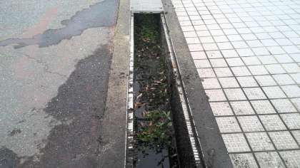 正門から入って坂を下りてきた所と茶色の塗装をした地面の境目に、溝があります。ここは、4年前にふたを開けて掃除しました。泥が溜まって、草が伸びていましたので掃除しました。今度、掃除をするのは2028年頃でしょう。今の1年生が5年生になった頃です。その頃、詫間小学校はどんな学校になっているのだろうかと思いながら掃除をしました。