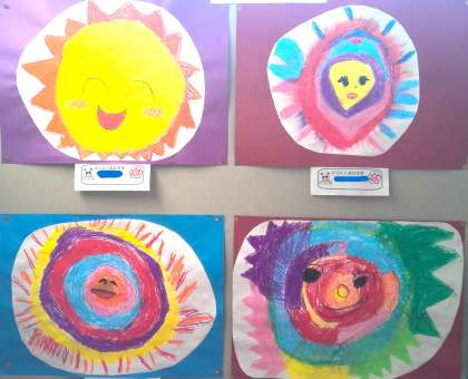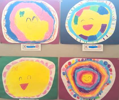 階段の踊り場に掲示している1年生の図工の作品です。授業参観日に見逃してしまったという保護者の皆様。ゆっくりご覧ください。「〇月〇日の写真集」にも掲載します。名前はふせていますので、どの作品なのかは、お子様にお聞きください。なお、教室に展示している作品につきましては、後日紹介いたします。