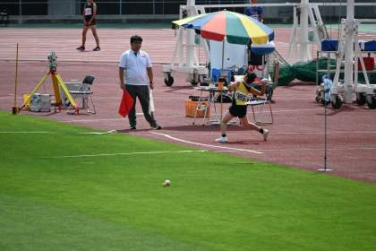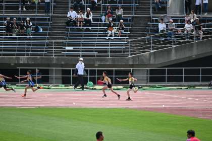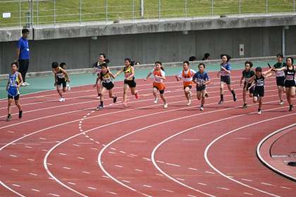 混合4×100mリレーとジャベリックボール投げ1組の競技の様子です。