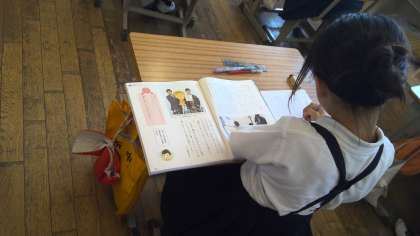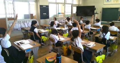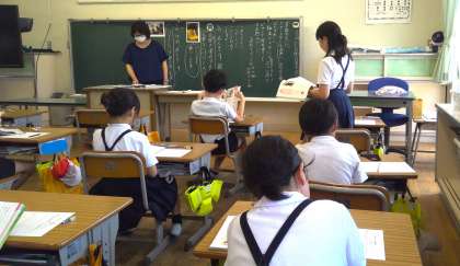 本日の5時間目。4年竹組さんは、道徳の授業です。今日は、将棋の藤井さんのお話をもとに「目標を達成するために必要な心」について考えています。