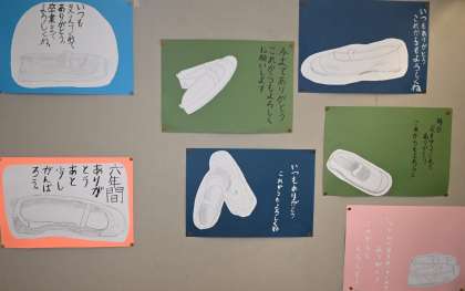階段の踊り場に掲示している作品6年生の図工の作品の続きです。