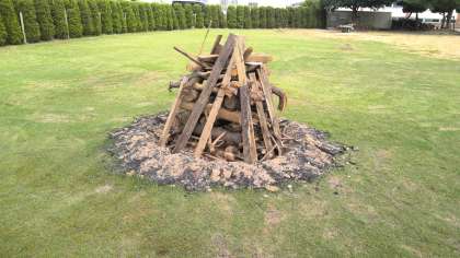 芝生広場で行うキャンプファイヤーの準備ができました。芝生も刈りました。そのキャンプファイヤーで使う点火用のトーチも準備しました。登校してくる子どもたち(特に5年生)は、興味津々で見ています。宿泊学習に向けて、どんどん気持ちも高まるように、敢えて、子どもたちの目に入るように作業を進めています。
