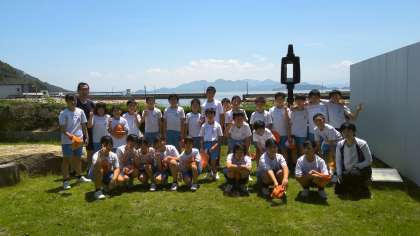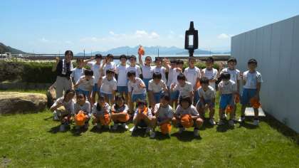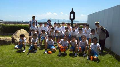 粟島に着きました。流さんの作品の前で記念撮影です。
