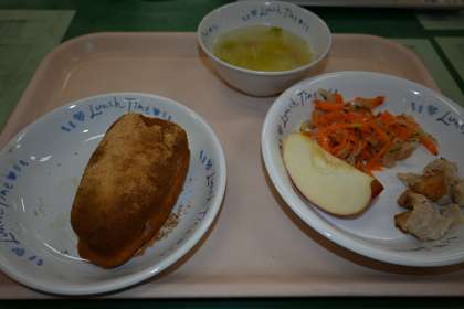 〇にんじんサラダ 〇コンソメスープ 〇りんご