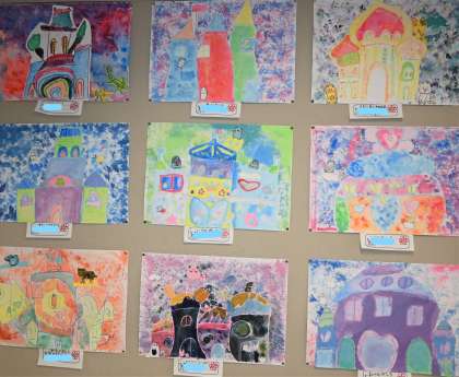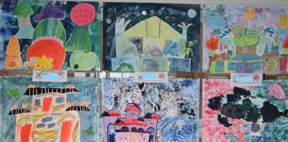 3年竹組の教室に掲示している図工の作品です。授業参観の時に見逃してしまったという保護者の皆様。ゆっくりとご覧ください。名前は伏せてありますので、どの作品なのかは、お子様にお聞きください。なお、階段の踊り場に掲示している作品については、先日、既にアップしています。本日中に、「10月8日の写真集」もアップする予定です。画像は、写真集の方が鮮明です。
