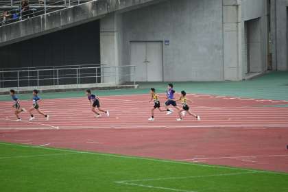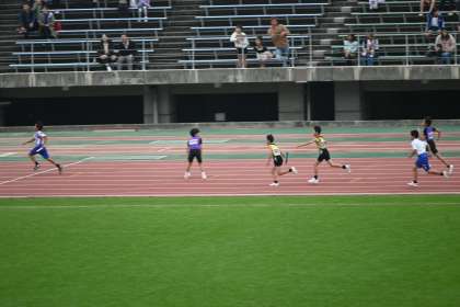 4年男子400mリレーの様子です。詫間小学校からは2チームが出場しています。