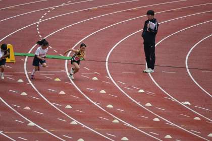 4年女子100m走のレースの様子です。
