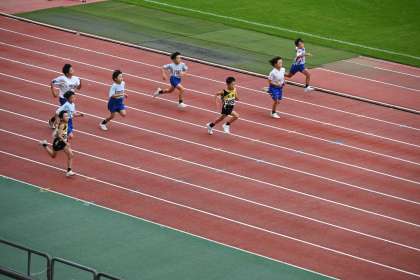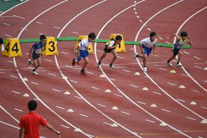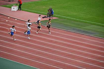 4年男子100m走のレースの様子です。