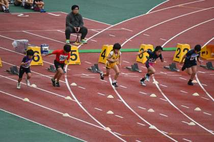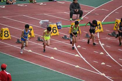 5年男子100m走のレースの様子です。