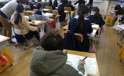 本校は、全学級に空調システムが整っていますが、新型コロナウイルス感染予防のため、換気を徹底しています。教室の場所や人によっては、室内でも寒さを感じると思います。