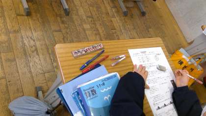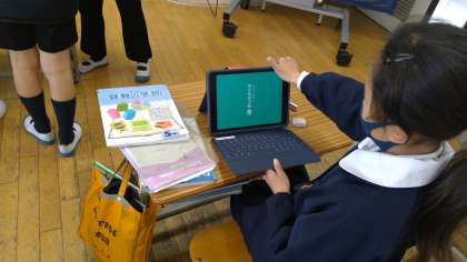 本日の1時間目。5竹さんは、きっと算数の授業だと思いますが、私が行った時は、算数のプリントを真剣にやっていました。その後は、タブレットで「速さ」の問題にチャレンジしていました。