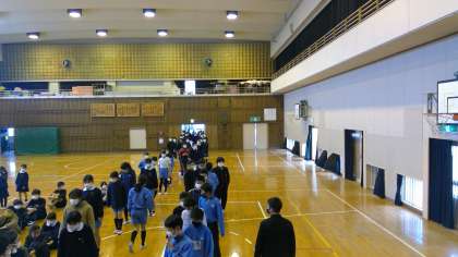 給食場から出火したという想定で、全校生の半分の学年(2、4、6年)が避難訓練を行いました。本来なら運動場に避難するのですが、今日は雨天でしたので体育館に避難しました。全員が避難し終わって人員確認の報告が終わるまで、わずか2分51秒でした。また、私語をする子どもも一人もいませんでした。真剣に訓練ができました。素晴らしい避難訓練でした。今日、訓練を実施しなかった1、3、5年は、来週の月曜日に行います。(真鍋)