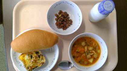 ○ 米粉パン 牛乳 キッシュ ミネストローネ ココア豆