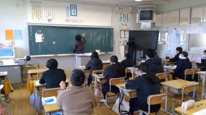 本日の2時間目。6松さんは国語の授業です。「心が動いたことを17音で表そう」と、俳句の学習をしていました。