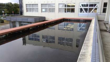 1時間目に図書室で1梅さんの授業を取材していて、ふと窓から本館の方を見てみますと、玄関の屋根に大量の水がたまっているではありませんか。そこで、すぐに排水溝にたまっている泥や草の除去作業にかかりました。簡単な作業なのですが、とにかく寒かったので、水たまりの中は大変でした。
