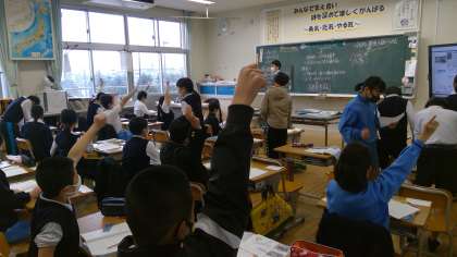 本日の1時間目。5松さんは社会の授業です。あいかわらず授業がスタートすると、「単元目標は・・・」とか「理由は・・・」と活発に発表をつないでいました。公害について真剣に学習していました。