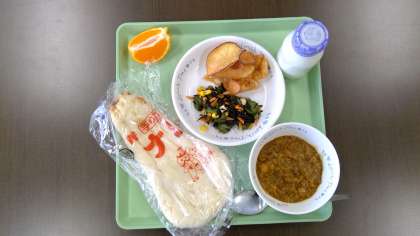 先ほど、出張(校長会)から帰ってきました。すぐさま、「本日の給食」のアップです。(真鍋)