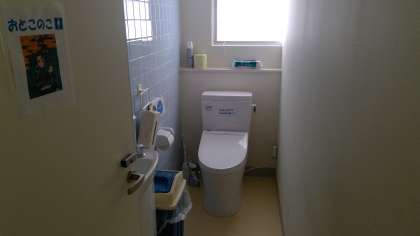 最後は、東館1階のトイレです。これまでは男女兼用でしたが、男子用(温水洗浄便座)1室、女子用(温水洗浄便座)2室になりました。