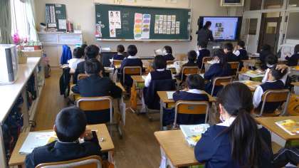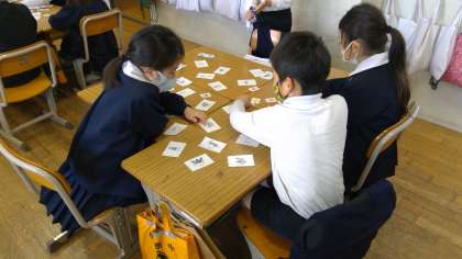 本日の2時間目。3松さんは外国語活動の時間です。Are you a ? Yes,I am.なんてやっています。その後は、スーパーカルタで楽しみました。