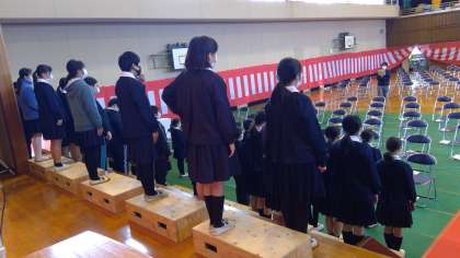 昨日、5年生の皆さんが一生懸命準備してくれた体育館で、今日は、一人一人に卒業証書を渡す卒業証書授与や、呼びかけと歌などの練習です。