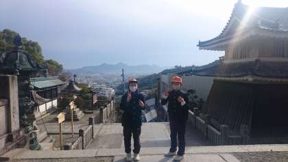ぼちぼち、階段をおりて、お土産を買ってるようです。何と、空は晴れてきました。午後からは雨かもしれませんが、金比羅さんが晴れて良かったです。